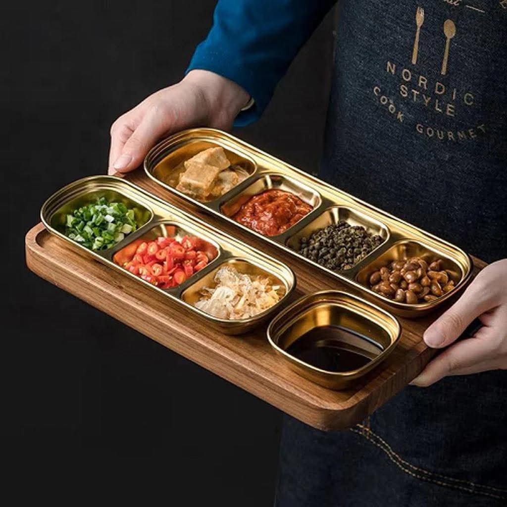 صحن ستيل فضي ذهبي