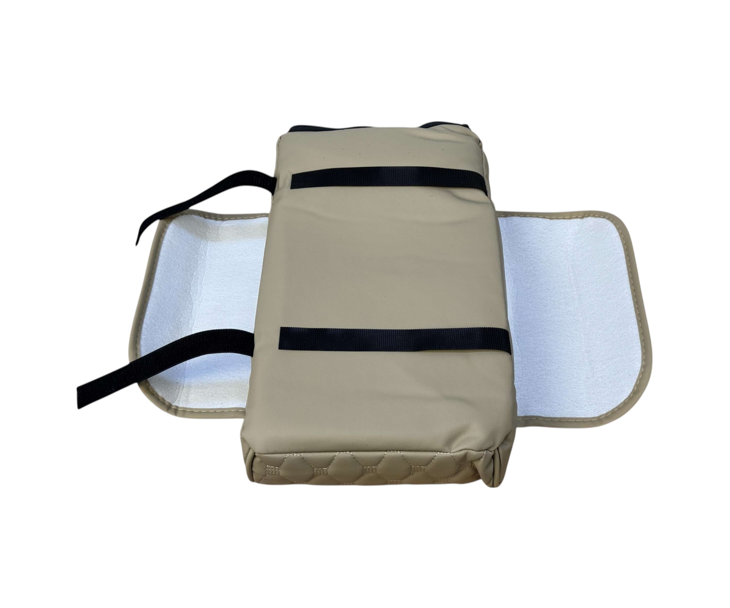 تصميم فاخر بخياطة بارزة: يتميز بلمسات أنيقة من الجلد الصناعي الفاخر باللون البيج وخياطة على شكل مربعات