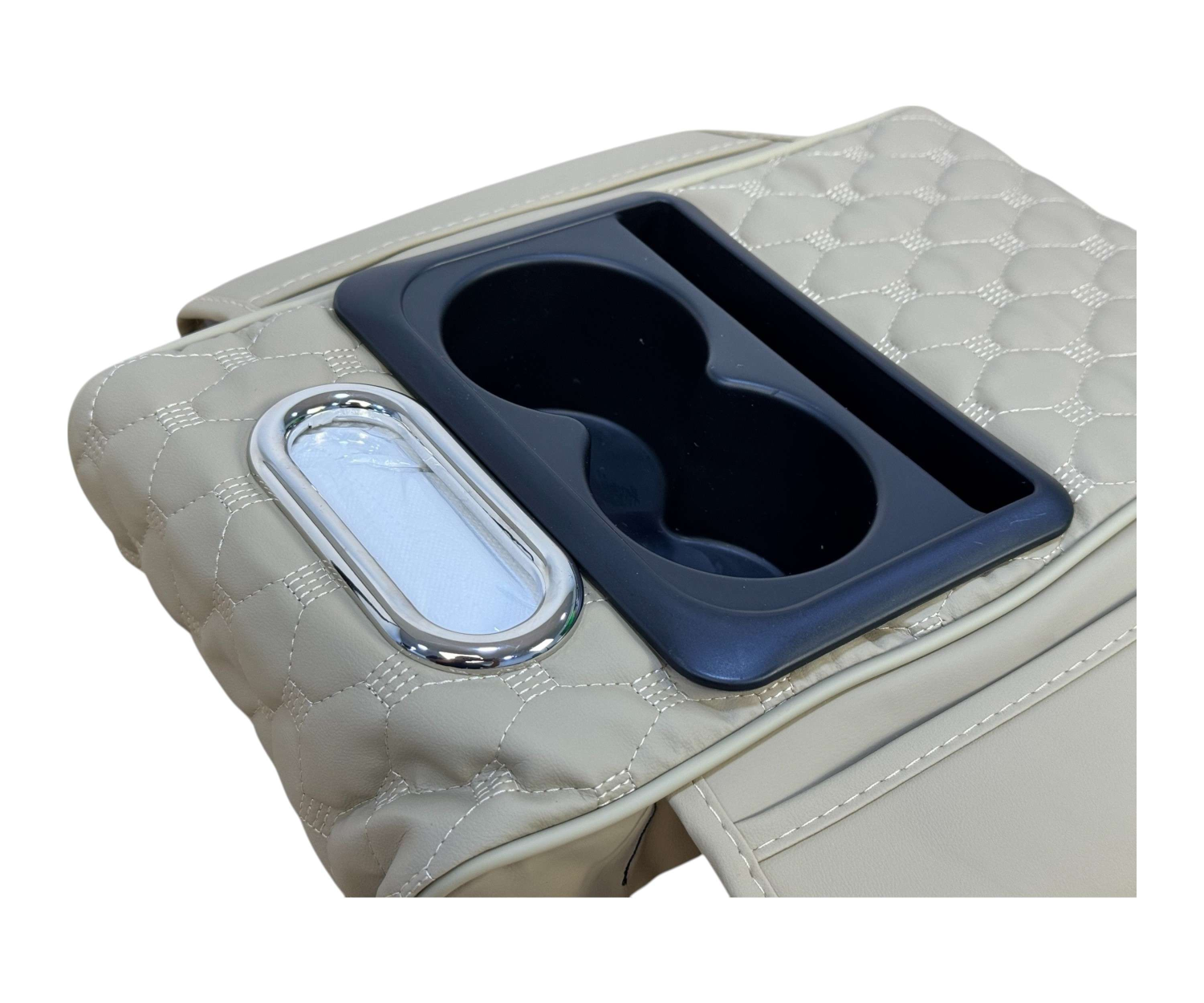 تصميم فاخر بخياطة بارزة: يتميز بلمسات أنيقة من الجلد الصناعي الفاخر باللون البيج وخياطة على شكل مربعات