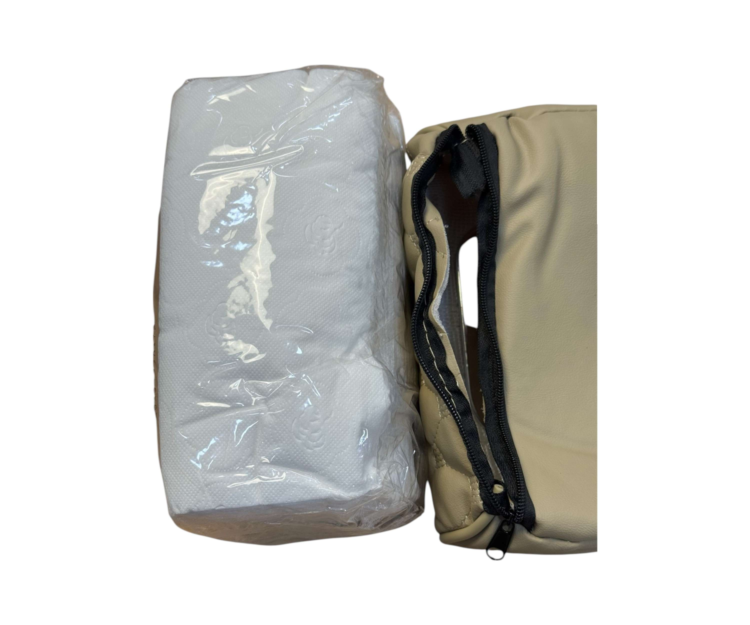 سعة داخلية مخفية: مزودة بسحاب جانبي لتعبئة المناديل أو تخزين أغراض إضافية مثل أوراق السيارة أو المناديل الاحتياطية