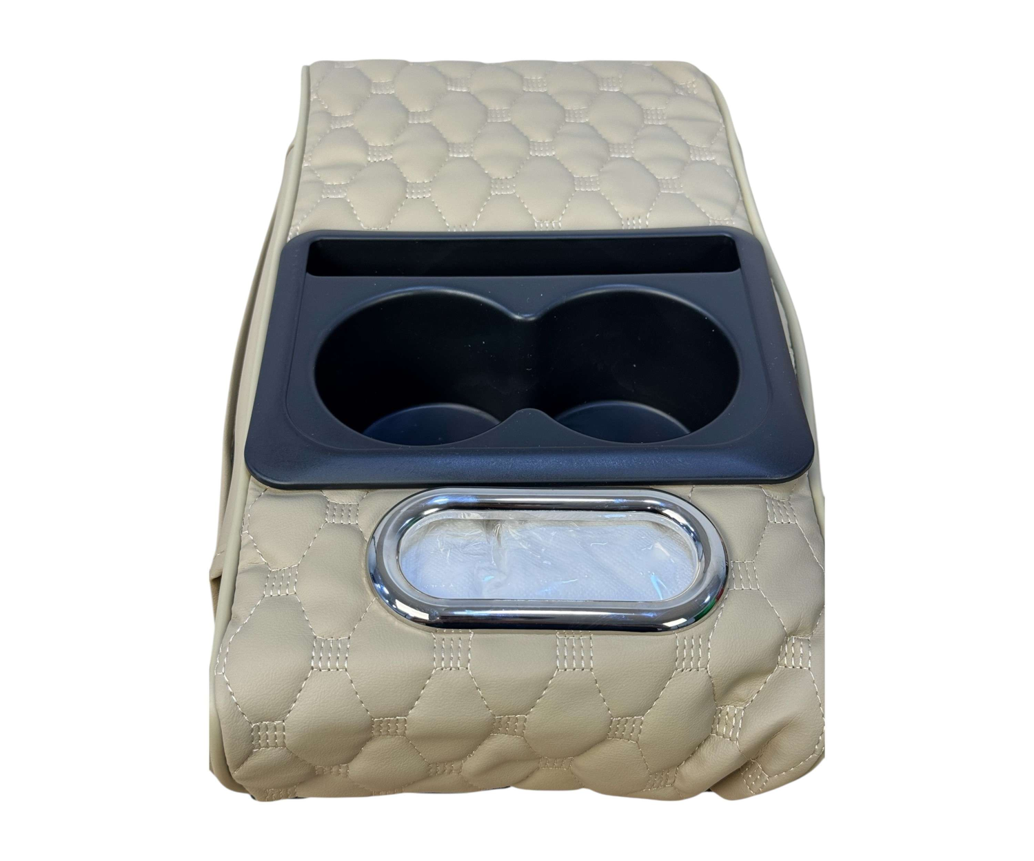 علبة مناديل مدمجة: في الجزء الأمامي مزودة بإطار معدني أنيق لتوزيع المناديل الورقية بسهولة